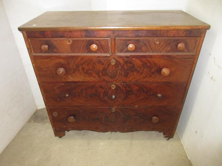 Antique Oak High Boy 5 Drawer Dresser On Casters All Original