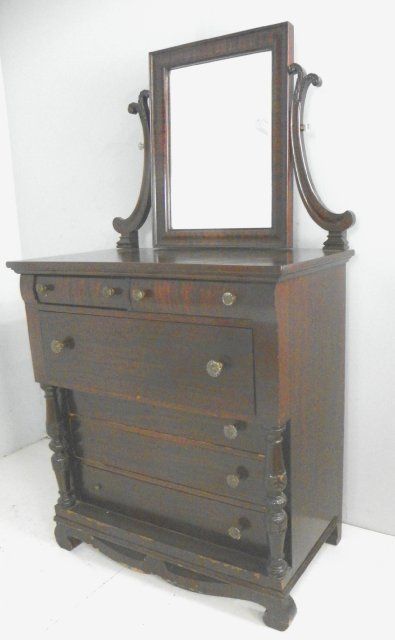 Antique Empire Style Mahogany Dresser With Mirror Ebth