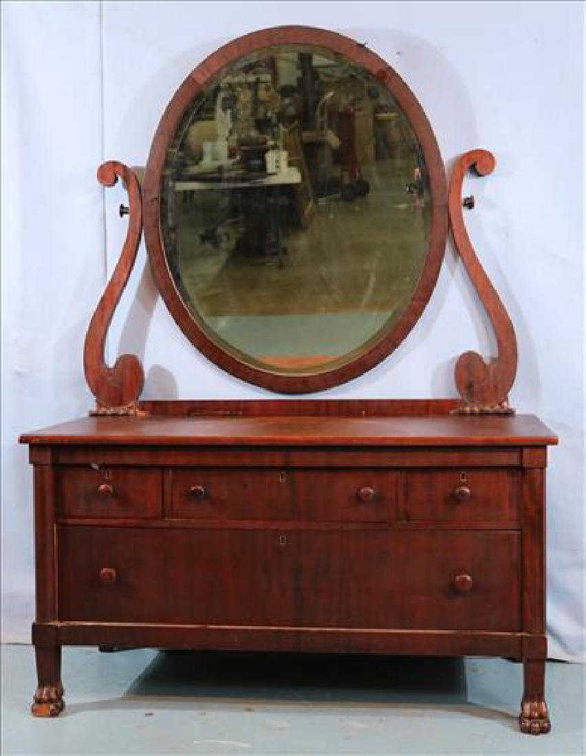 Sold Antique Mahogany Lowboy Dresser With Oval Mirror Bag The Web