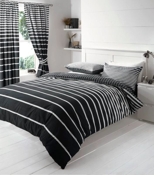 Striped Duvet Quilt Cover Bedding Grey Set Black And Amp White Uk