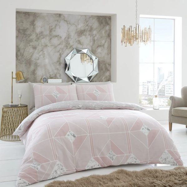 Blush Pink Metro Geometric Diamond Single Duvet Cover Pillowcase