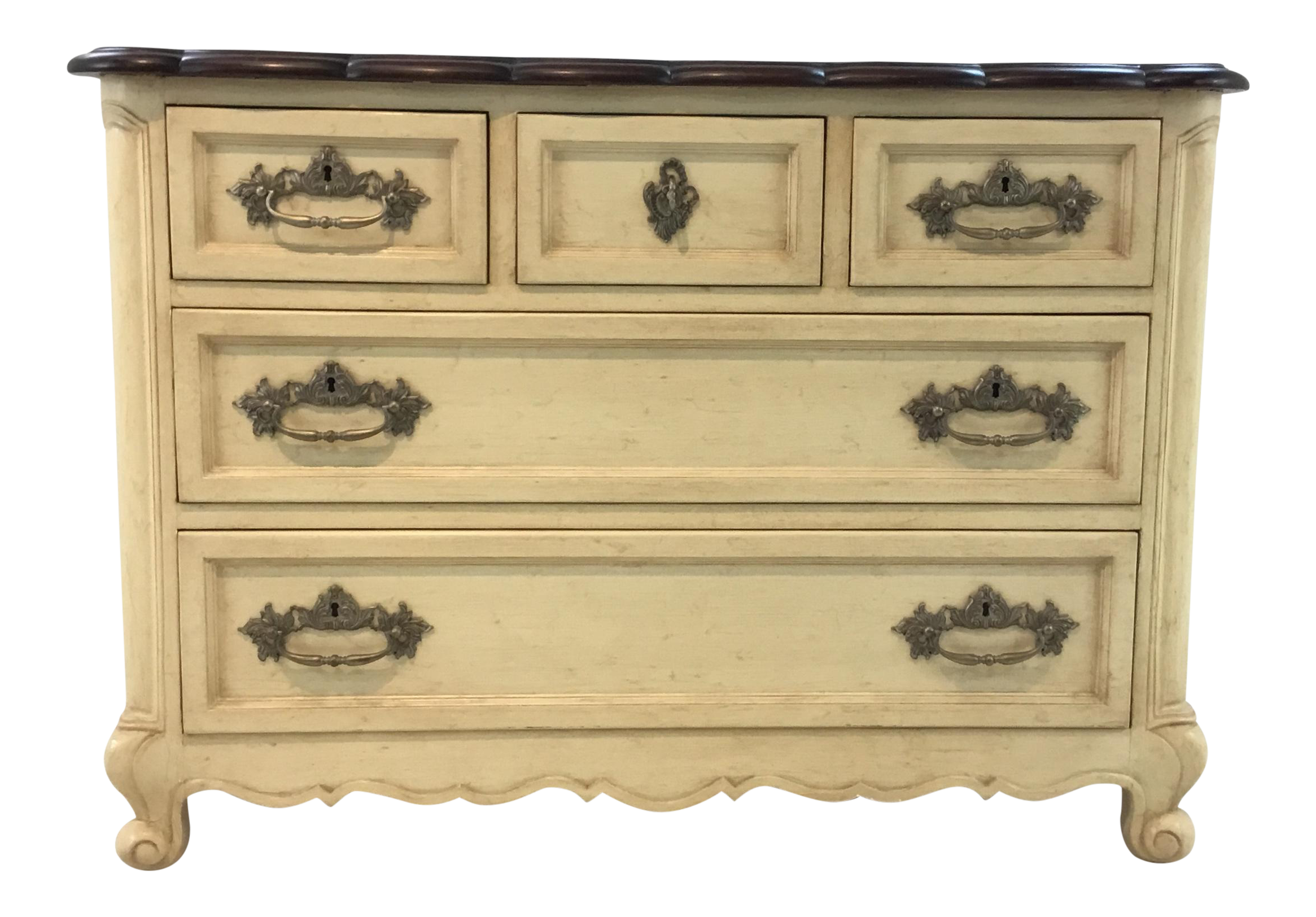 Cream 6 Drawer Dresser With A Special Walnut Top Kc Country Home