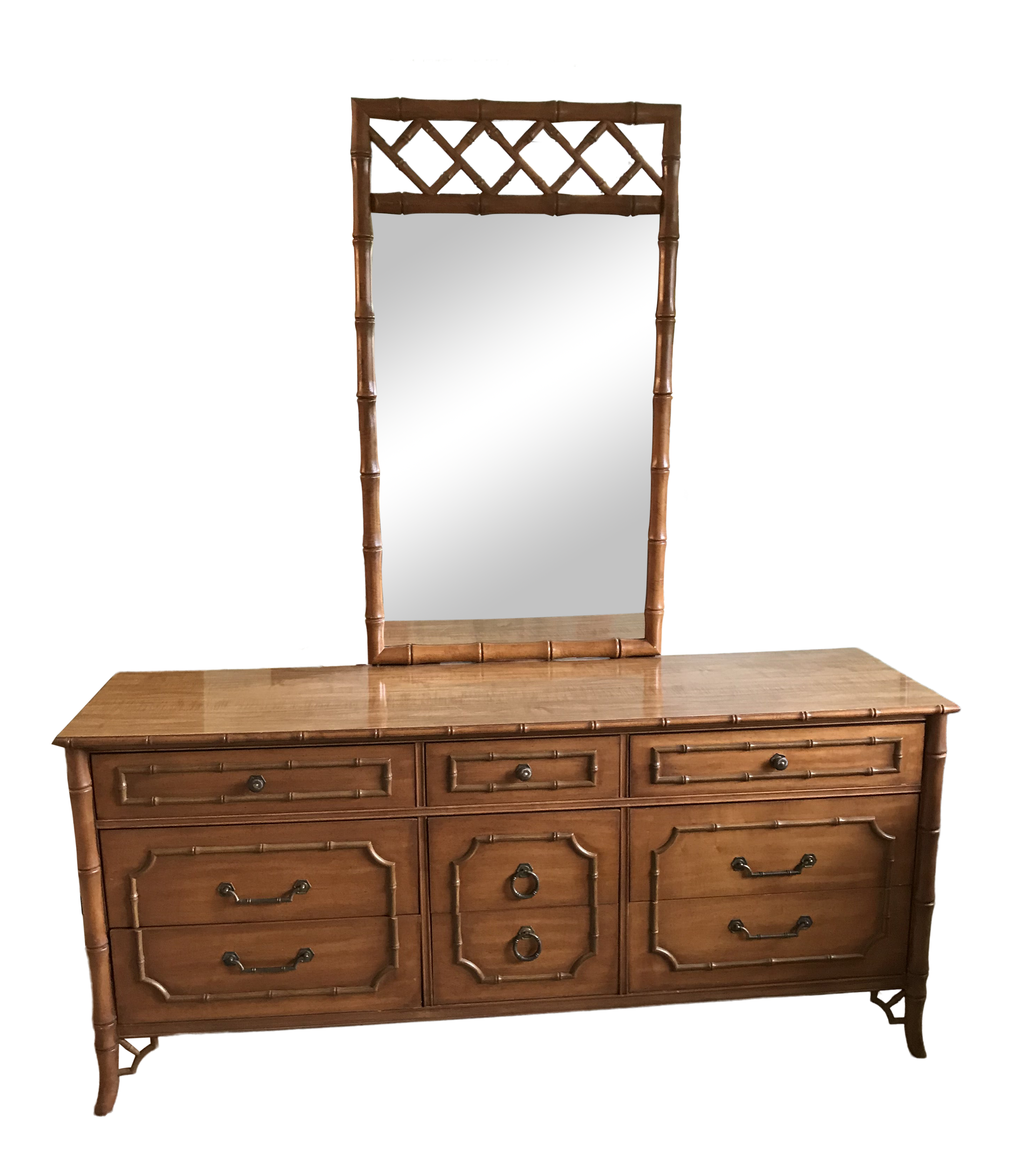 Vintage Mid Century Dixie 9 Drawer Dresser With Mirror 9 Drawer