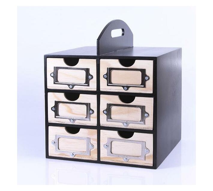 Utility Box 6 Drawer With Handle Labels Black Frame Natural