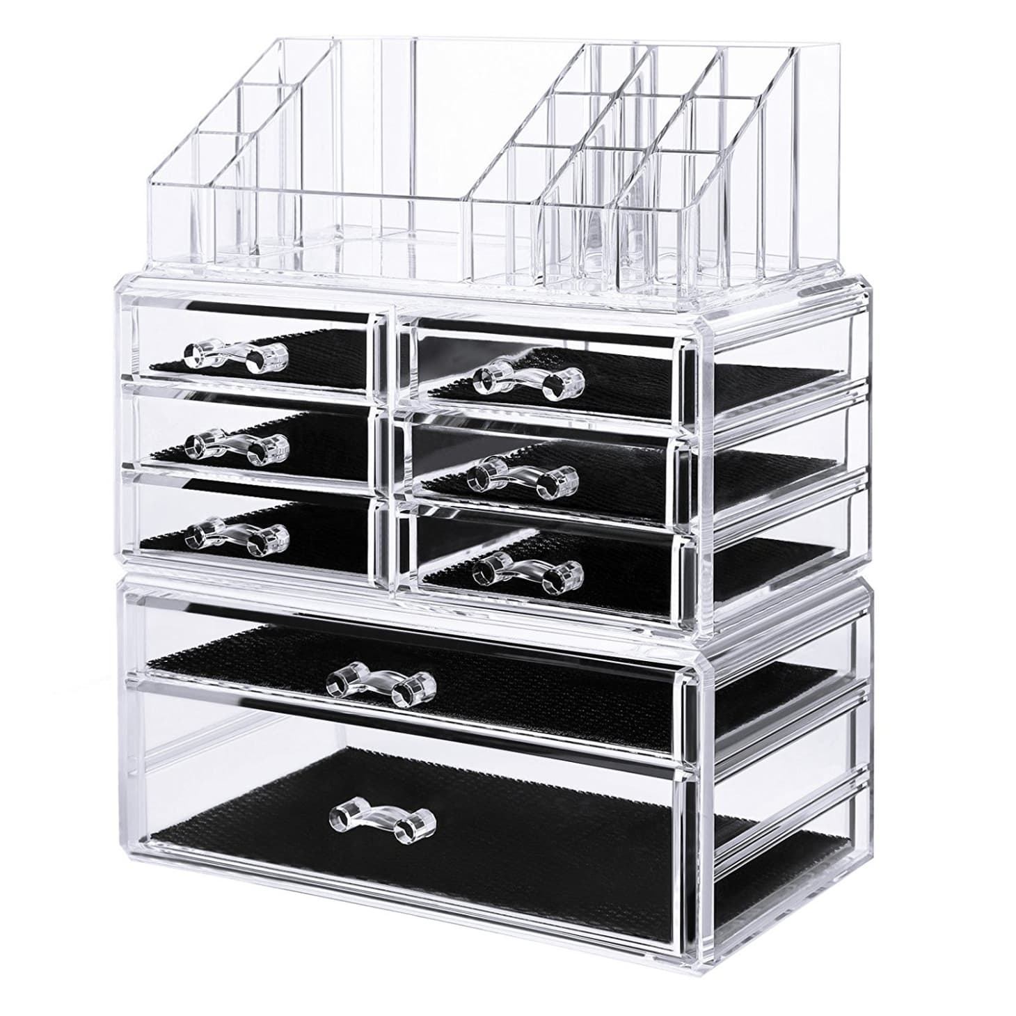 Medium Clear Makeup Organizer Set 3 Large 4 Small Drawers Top