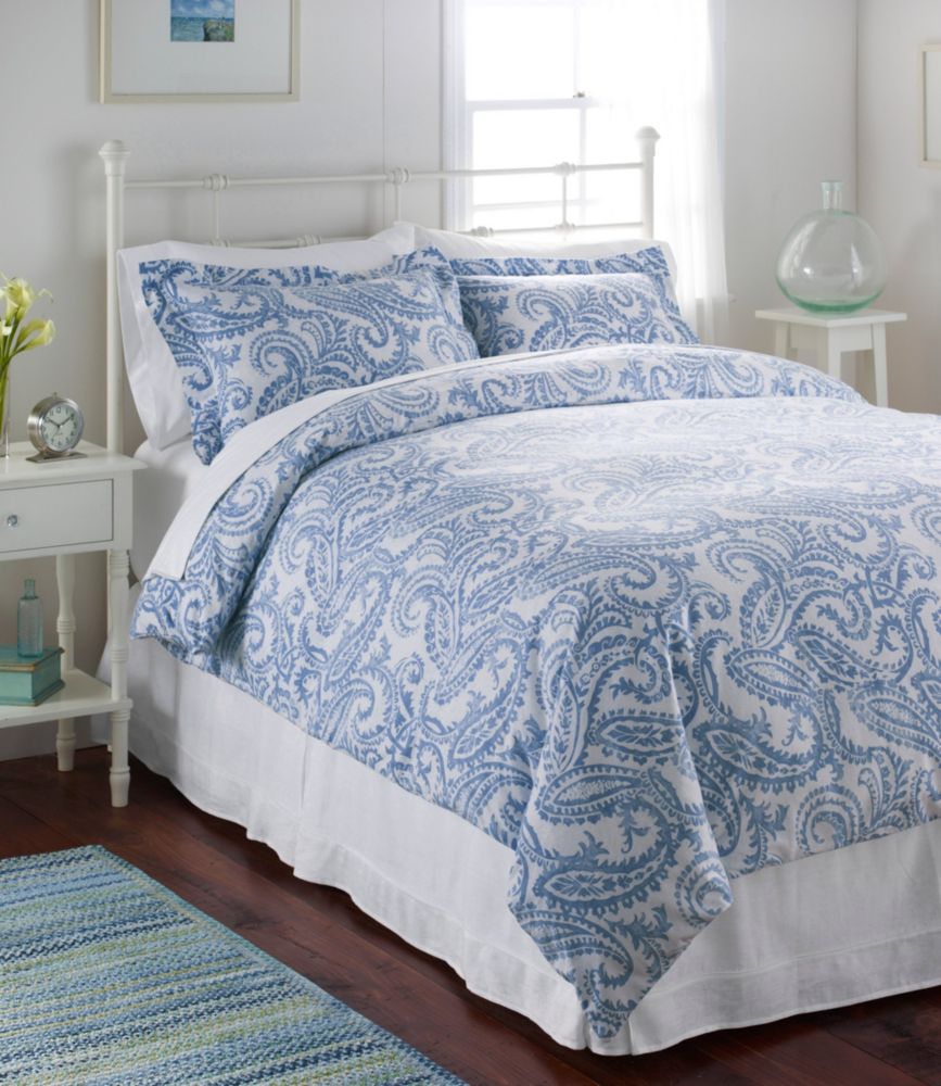 Garnet Hill Queen Dbl Full Flannel Duvet Cover Cases Blue White