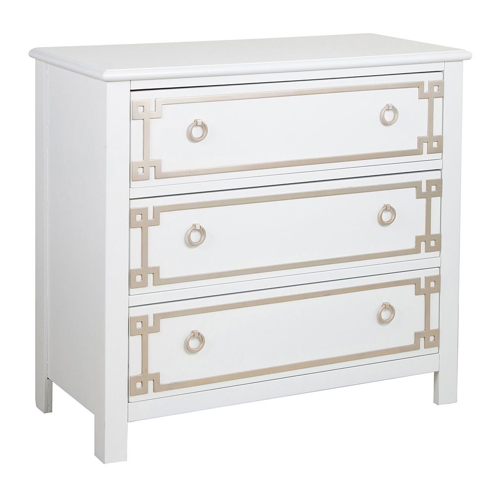 Greek Key 3 Drawer Chest Storage Dresser Accent Furniture
