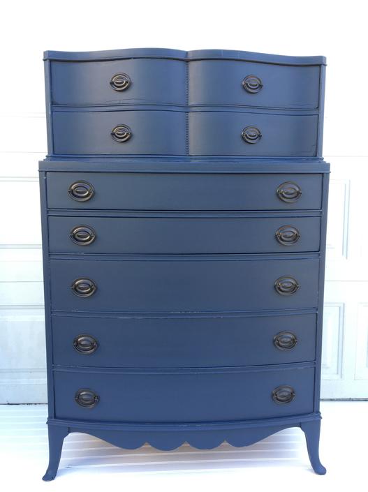 Mid Century Blue And White Waterfall Style Highboy Dresser 185