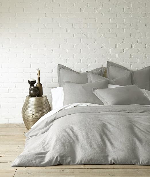 Light Grey Melange Linen Duvet Covers Pillows Yarn Dyed