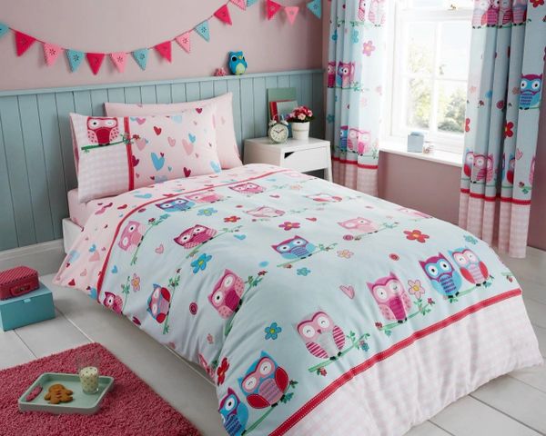 Owl Multi Girls Kids Single Duvet Cover Children Rotary Bedding