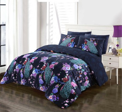 Peacock With Flowers Navy Duvet Cover Set