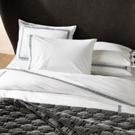 If youre looking for a percale duvet cover youll want to consider the geo embroidered organic percale duvet cover which has matching shams as well.